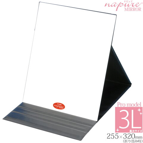 スタンドミラー 卓上ミラー 折立ミラー エコ 3L HP-53 鏡 角型 ナピュアミラー プロモデルかがみ 卓上鏡 角度調整付 特許 毛穴 シミ シワ メイク プロ使用 折りたたみ 母の日 堀内鏡工業