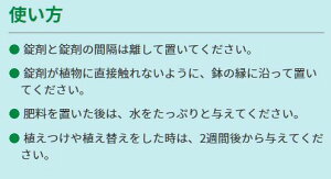 錠剤が植物に直接触れないように、鉢の縁に沿って置いてください。