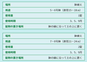 植えつけや植え替えをした時は、2週間後から与えてください。