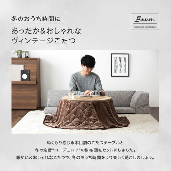 【20時〜4時間P5倍】 ヴィンテージこたつ 2点セット 円形 直径69 こたつ + 掛布団 コーデュロイ コタツ 炬燵 こたつテーブル 火燵 テーブル リビングこたつ こたつ布団 セット コンパクト 省スペース 一人暮らし モダン カントリー 北欧 おしゃれ シンプル 木目調