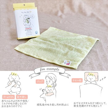 おぼろタオル ハンドタオル ベビータオル 新生児 ベビー専用 おでかけタオル 日本製 ベビーグリーン 約32×32cm ( 柔らかい ふわふわ 小さめ 吸水 乾く 赤ちゃん 子供 こども 男の子 女の子 吐き戻し 汗 おしぼり コットン 正方形 無地 保育園 )
