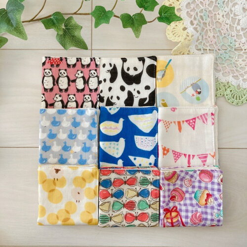 ガーゼハンカチ キッズハンカチ パンダ とり インコ あひる ちょうちょ ひつじ ハンカチ 女の子 男の子 ユニセックス おしぼり 保育園 給食