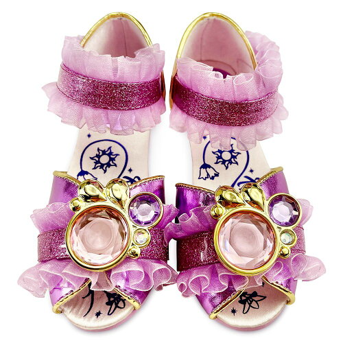 マジック・イン・ディテール本物のディズニープリンセスのコスチュームシューズメタリックなアッパーとヒールつま先にファセットされた宝石をセッティングキラリと光るアンクルストラップは、セルフ・スティック・ファブリック・クロージャー付きラッフルされたオーガンジーの縁取りゴールデンパイピングメタリックな装飾とラプンツェルの「サイン」が施されたサテンのフットベッドローヒールノンスリップソールディズニー映画「Tangled」をモチーフにしたキッズ用ラプンツェルコスチュームコレクションの一部●仕様すべての人工材料輸入安全性警告: 窒息の危険性 - 小さな部品。