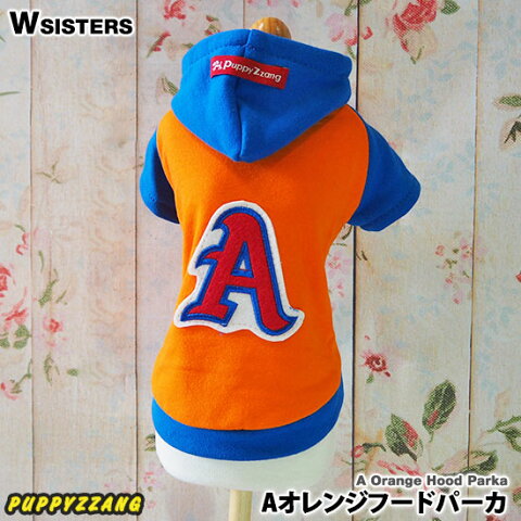 【1000円特価商品】【メール便可】 犬服 犬の服 パーカ フード かわいい 人気 新作 小型犬 春夏 秋冬 オレンジ Puppyzzang パピーちゃん 正規品 WSISTERS ダブルシスターズ ダブシス 【Aオレンジフードパーカ】
