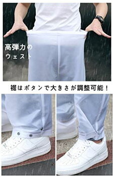 ・レインパンツのウェスト部にゴムが入り、痩せる方でも、太い方でも、ご使用いただけます。