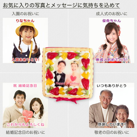 写真ケーキ スクエア型 フルーツ生クリーム 5号バースデーケーキ 誕生日ケーキ 【送料無料】 フォトケーキ イラスト プリント 4〜5名様用 四角 サプライズ 冷凍