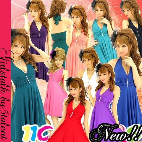 ◆あす楽即納◆【カラバリ豊富】着痩せホルター♪胸切り替えAラインデザイン★ミディドレス【結婚式 ステージ衣装 キャバ キャバクラ ドレス dress 激安 二次会 格安 ストレッチ おしゃれ M L LL フリー 体型カバー 通販 人気 再販 楽天 ダンス】大きいサイズOK【RCP】